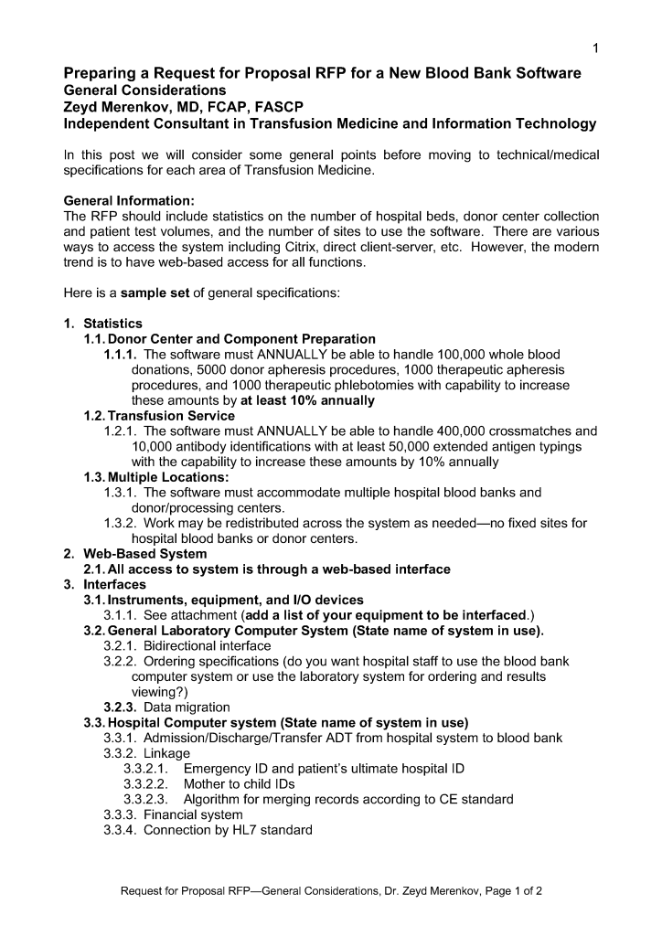 Request for Proposal 2: General Considerations