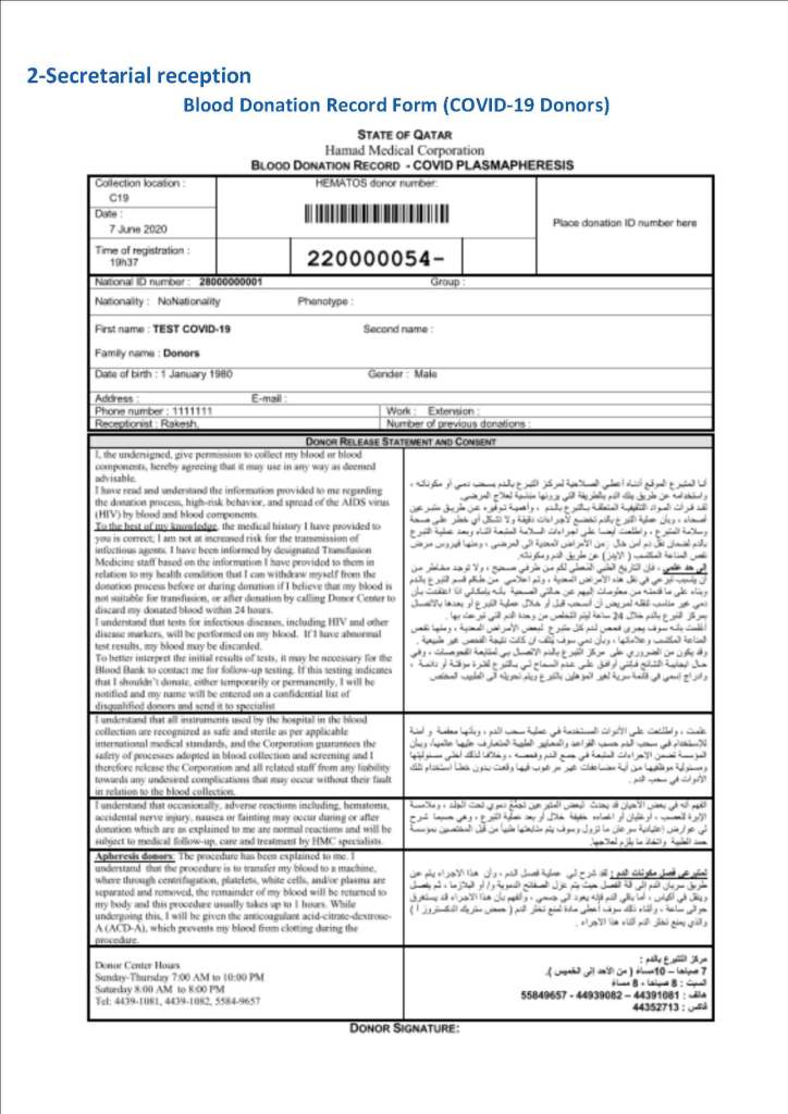 - As per Apheresis Policy (TRM-PM-410-000-000-01), the assigned staff nurse from the unit shall contact the Blood Donation Center.