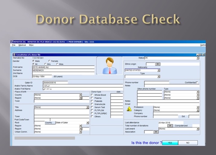 - System asks end-users to verify patient/donor identity before starting any access to the patient/donor record.