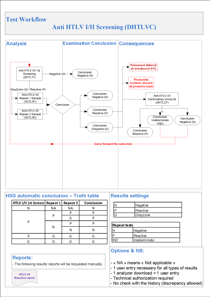 As I designed in Medinfo, this is a much simpler algorithm than HCV and uses an HTLV-1/HTLV-2 screening test and a confirmatory linear immunoblot assay LIA that can discriminate between type 1 and type 2. If there is an indeterminate result, a repeat test is ordered after 6 months: