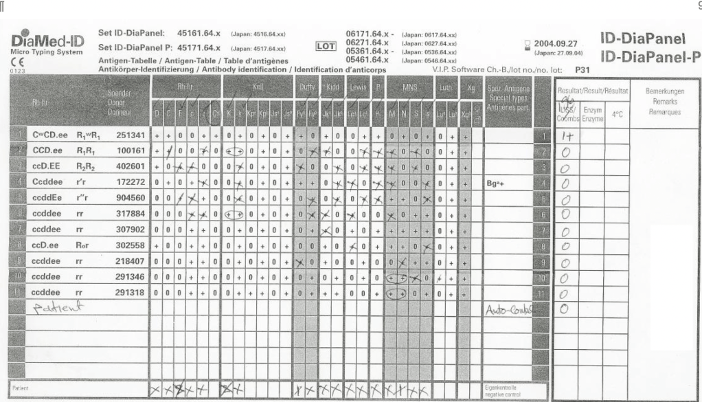 Patient module including all compatibility testing, ABO/D typing, extended antigen typings, direct and indirect antiglobulin testing (antibody screens), antibody identifications, eluate, component modifications (thawing, pooling, aliquoting), interfacing of Diamed automated gel testing