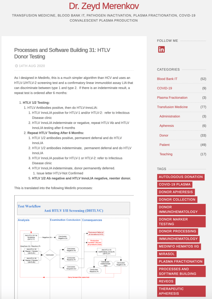 Please refer to my website https://drzeydbloodbank.com for specific posts on Medinfo software process building. On the right hand side from the bottom TAGS menu, pick Medinfo Hematos IIG to see those articles.