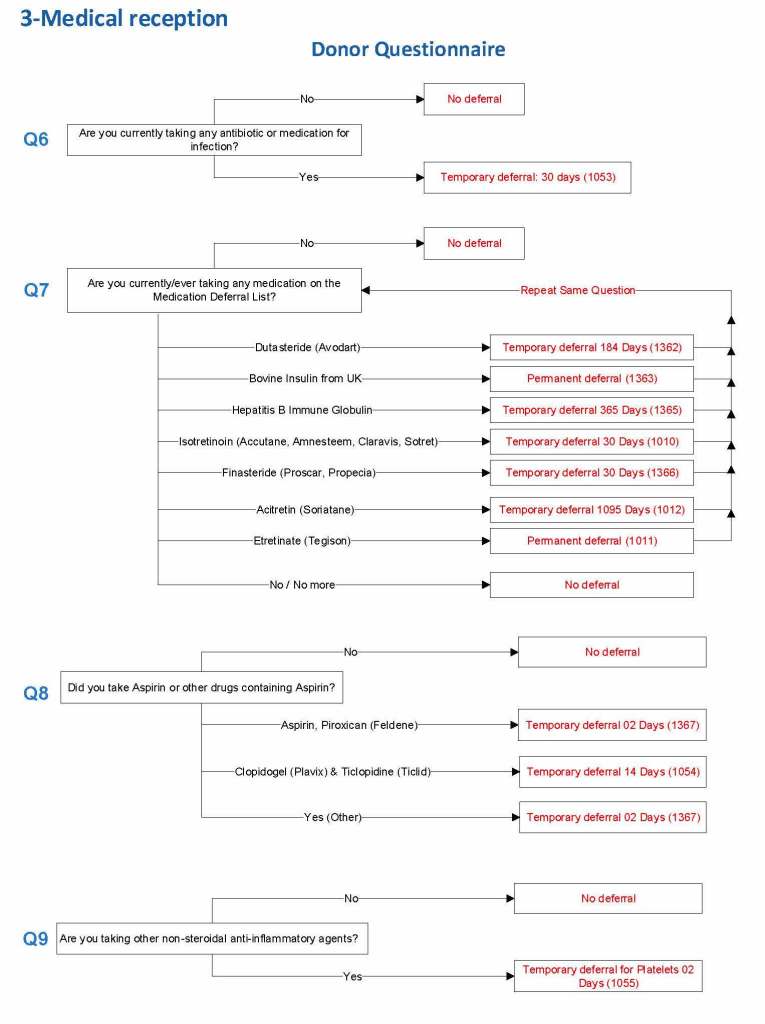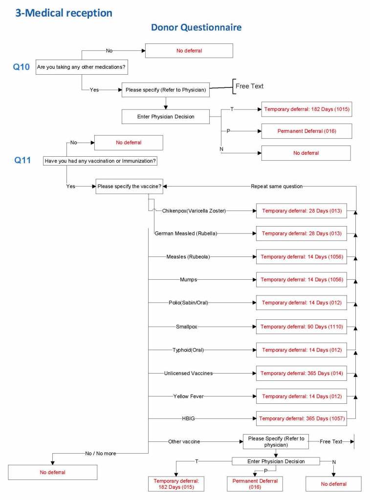 Some questions were more open-ended, and the interviewer manually entered a medication, surgical procedure, etc. The transfusion physician would review this and assign a temporary (specifying the interval) or permanent deferral.