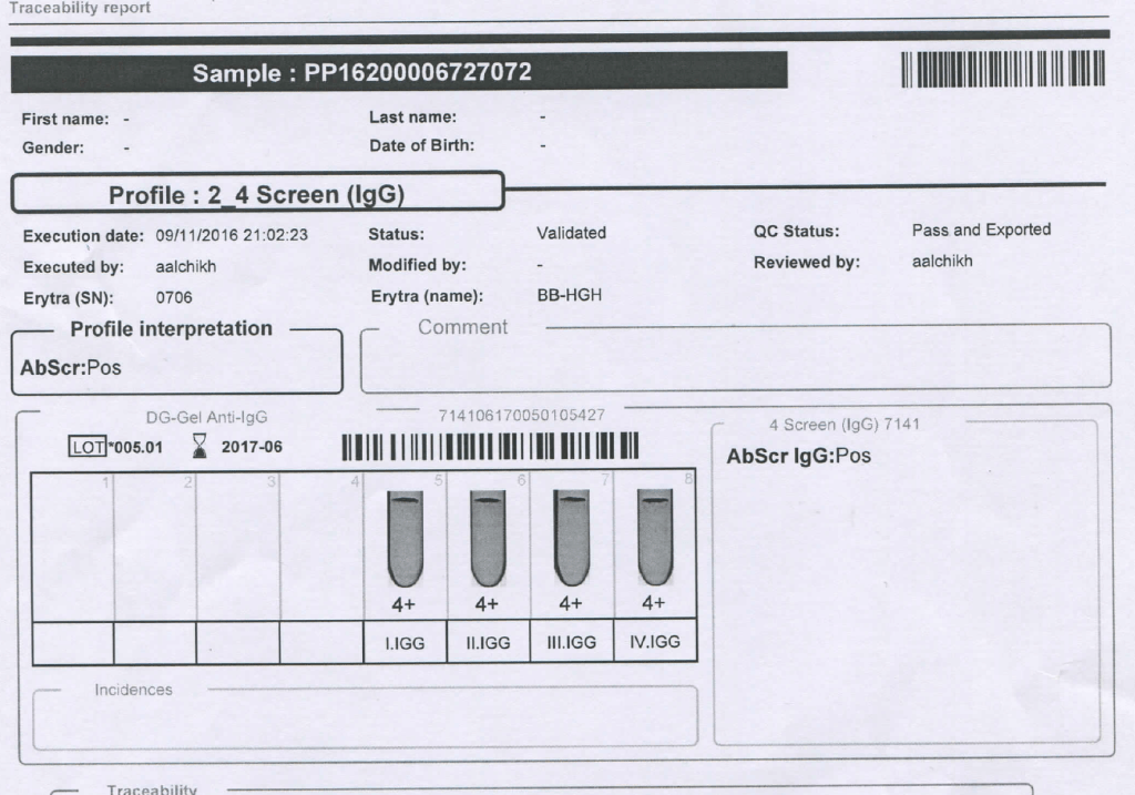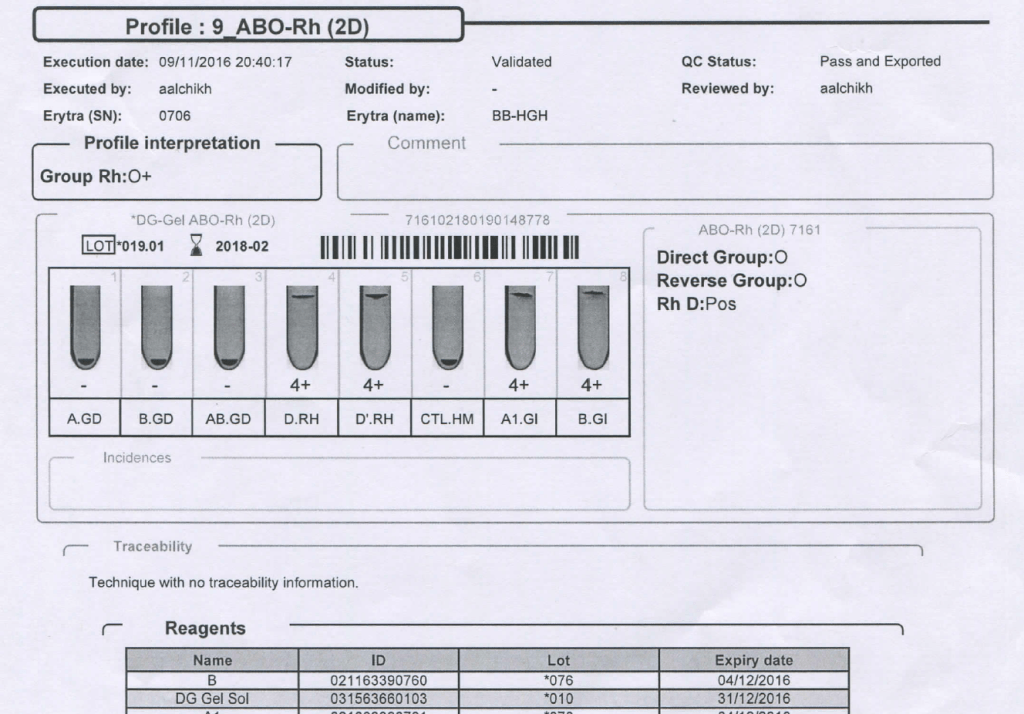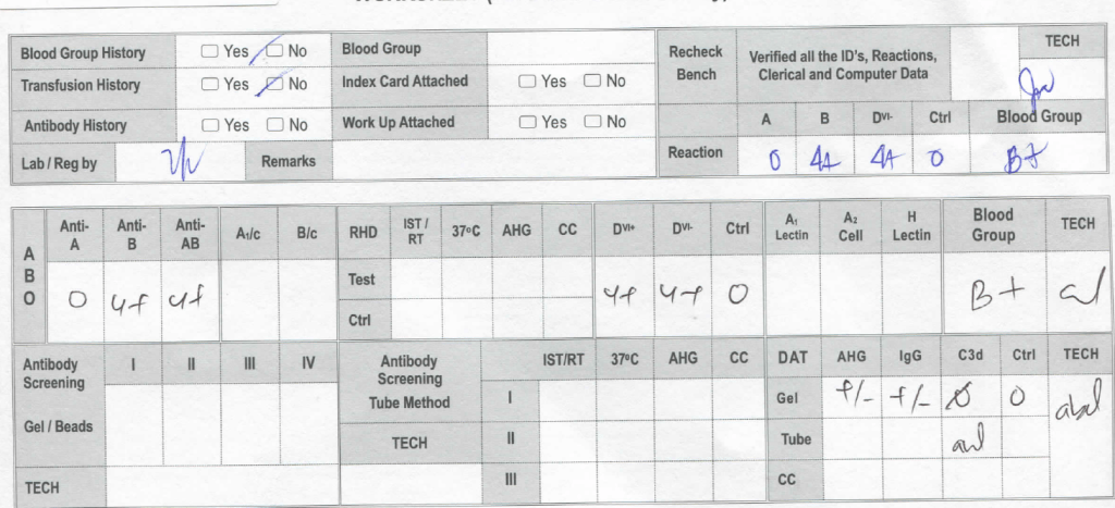 She gave birth to a baby girl, group B, R1R1 K-neg. This is the neonate’s workup: