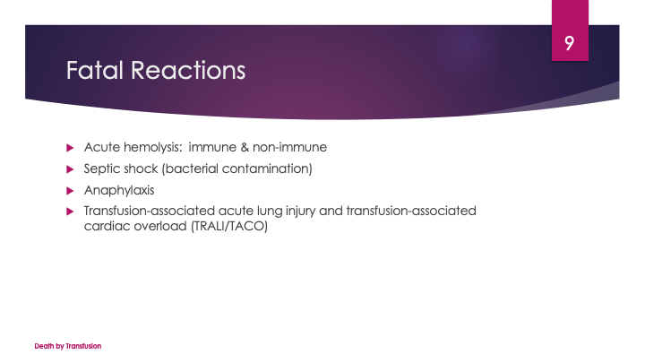 Second part of fatal adverse effects due to transfusion: this was originally presented at the Saudi MOH several years ago: