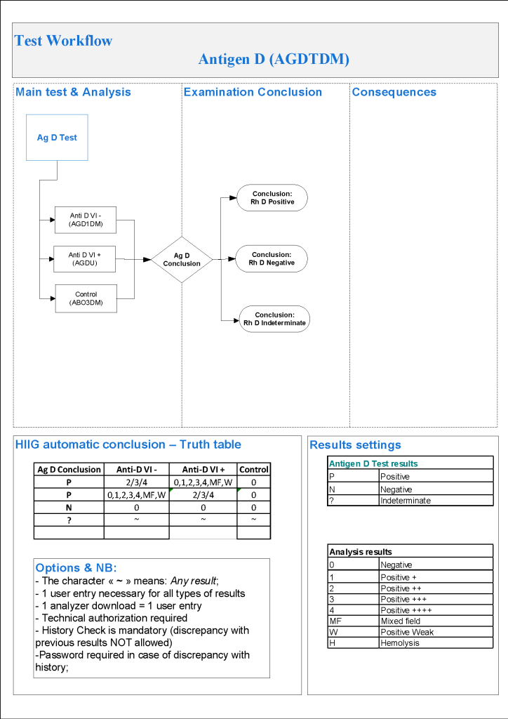 For donor D typing, I always had both automated and manual methods set up on the blood bank computer system Medinfo Hematos IIG. The automated method had a bidirectional interface between Medinfo and the instrument. Medinfo did not need a separate middleware. A truth table was prepared for acceptable results for automatic interpretation. Other results had to be manually interpreted by someone with the appropriate security level.