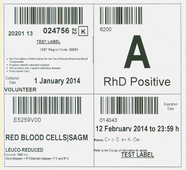 - SDP (Octaplus) ISBT labels are prepared and attached by the manufacturer Octapharma during the manufacturing process and will be used/read as such.