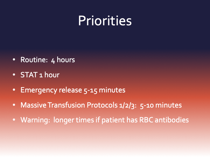 An improper label, be it for the wrong unit, or improper designation can have catastrophic results to the recipient. This is why this is such a CONTROLLED process under Medinfo Hematos IIG. There are label-printing softwares available that do not follow these rules, but I consider them dangerous to use since these safeguards are not enforce—they are NOT permitted here.