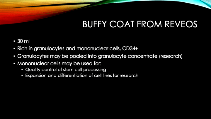 He had no experience with universal leukodepletion, pathogen-inactivation, platelet additive solutions, or automated component production such as the Terumo BCT Reveos. He did not interpret donor marker testing results.
