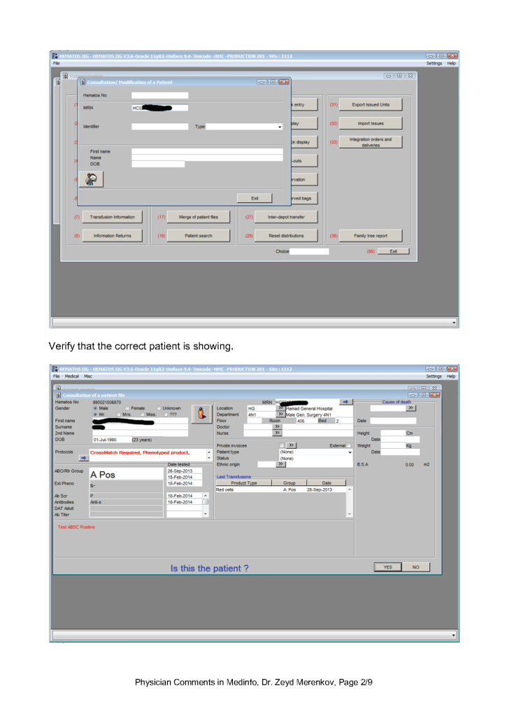 - Any other situation where the transfusion physician determines it is desirable to enter a comment