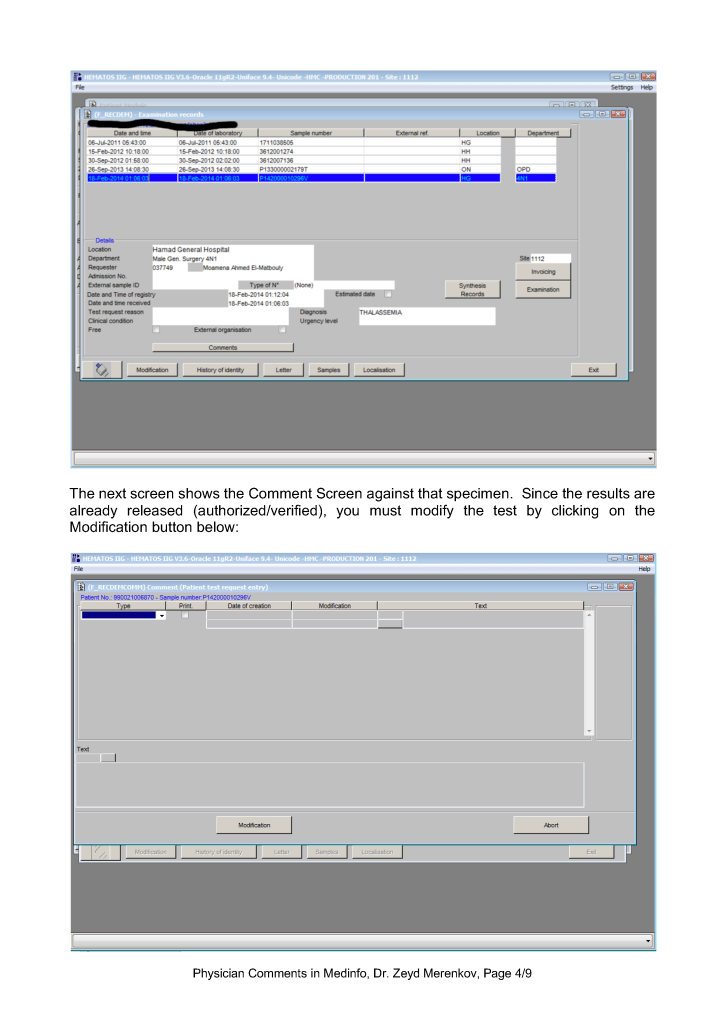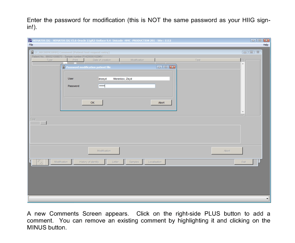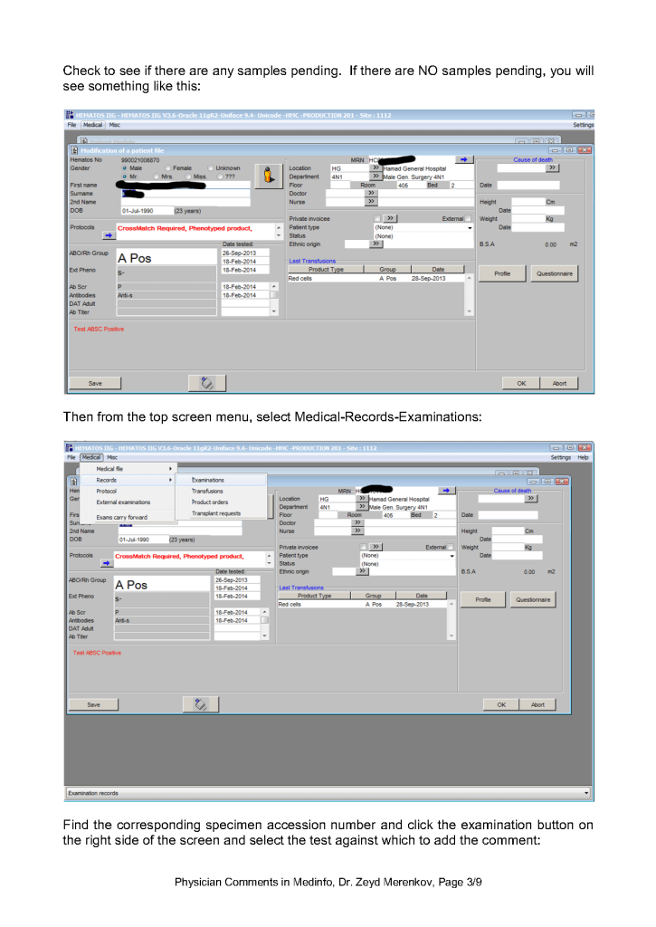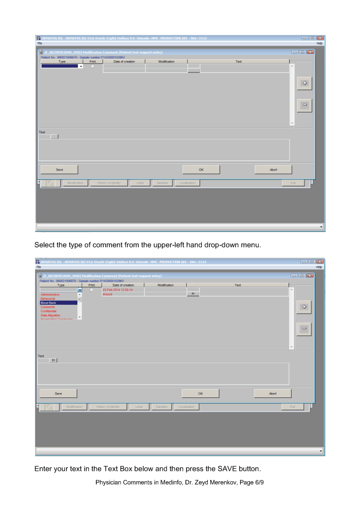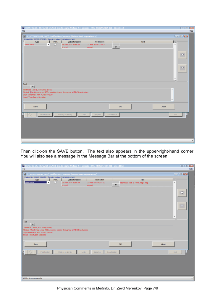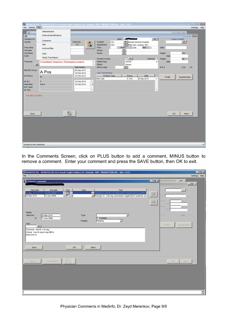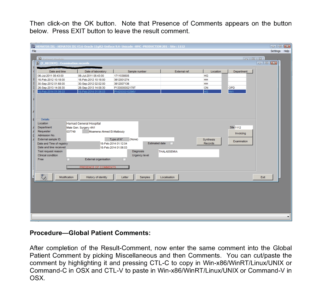 - Copy all result-comments and also enter then as global comments against the patient or donor record as applicable.