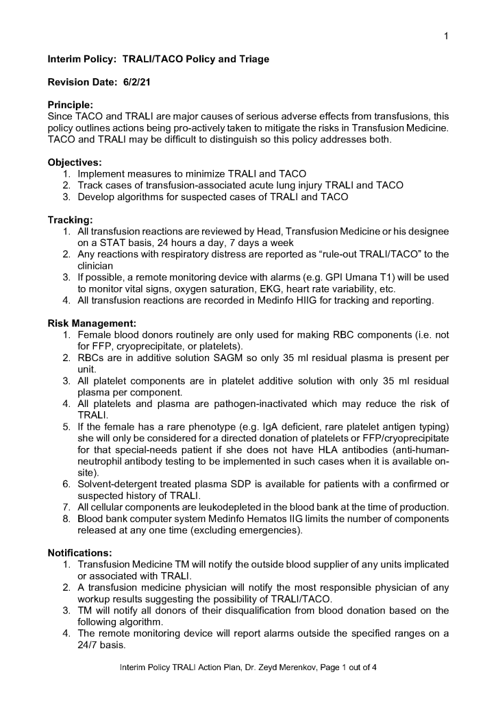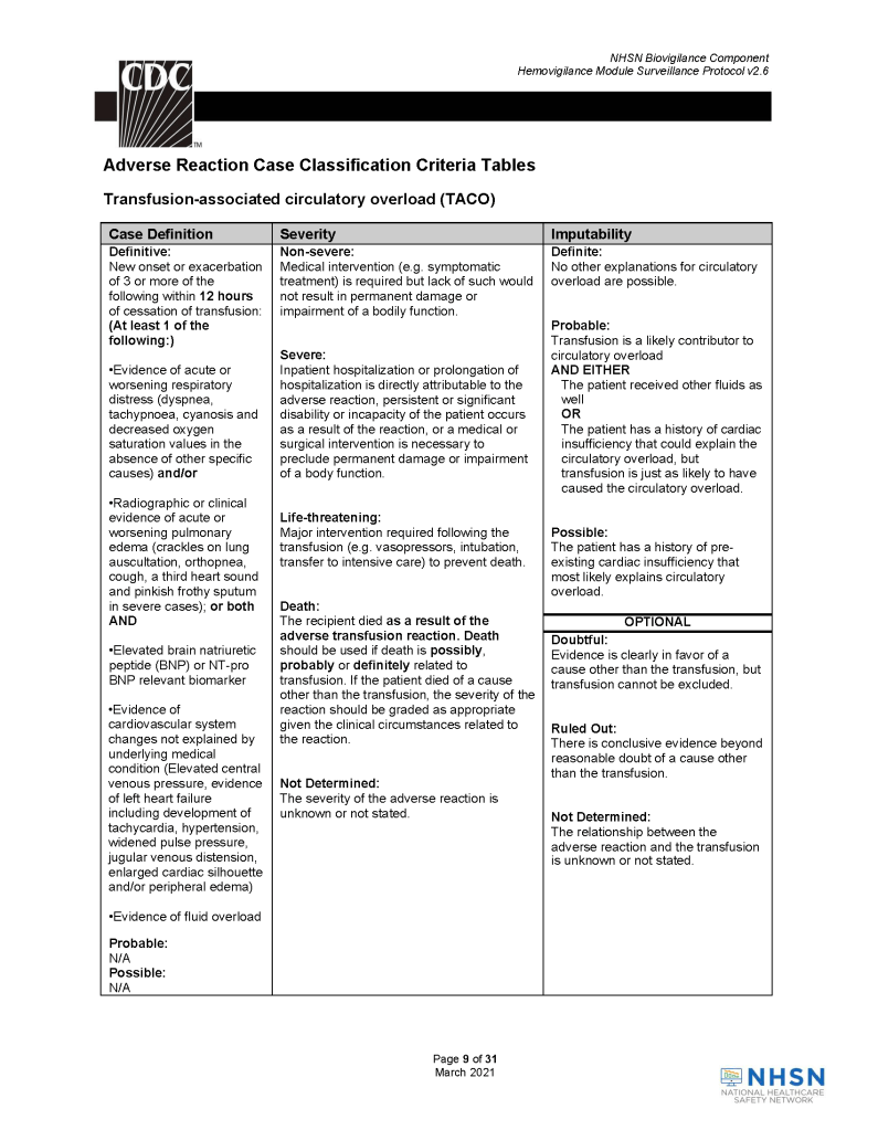 This is a revision of a previous post, incorporating an updated definition of Transfusion-Associated Cardiac Overload TACO from the National Healthcare Safety Network, Biovigilance Component Hemovigilance Module Surveillance Protocol, Version 2.6.