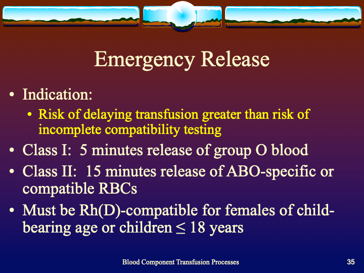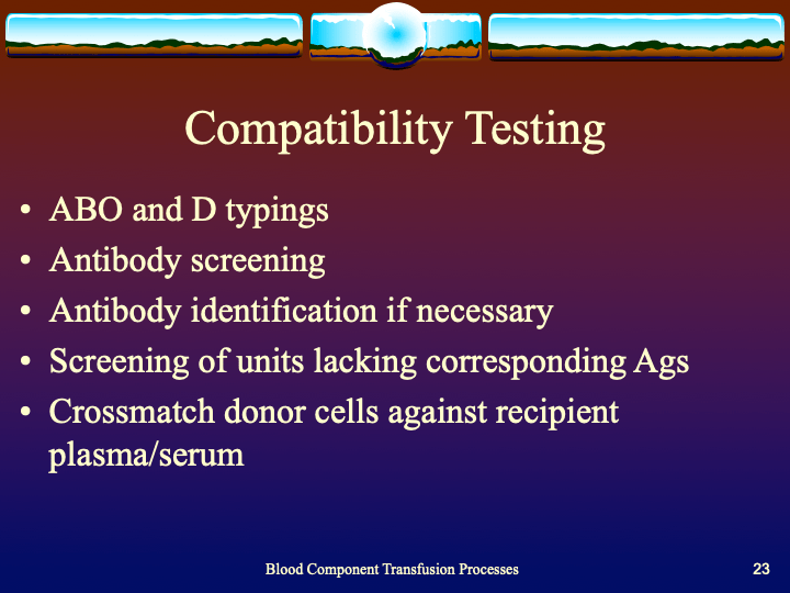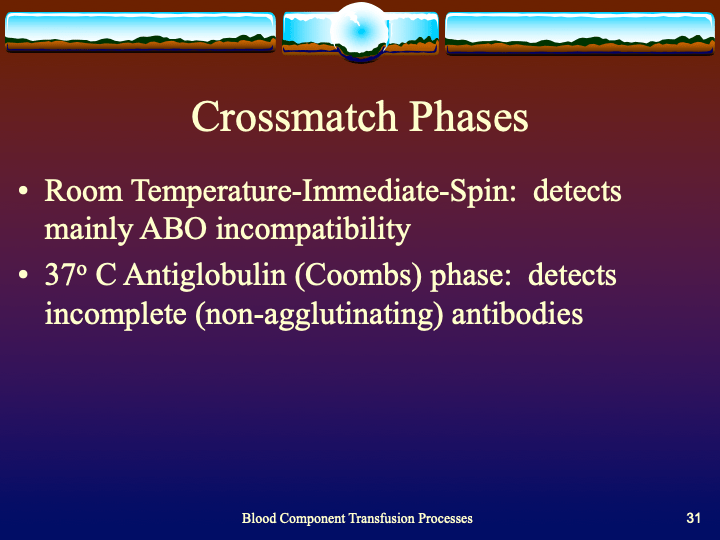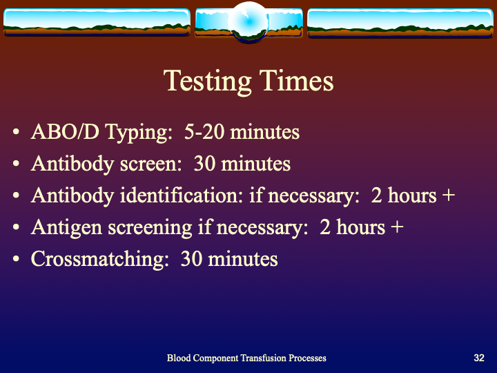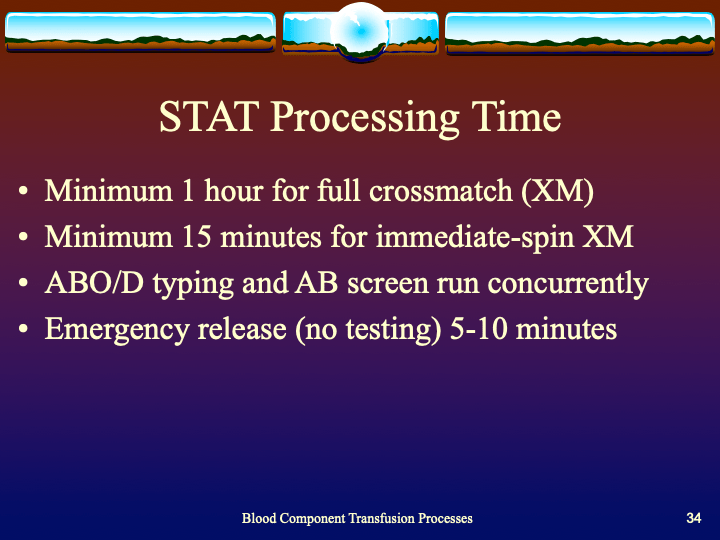 I still gave them lectures on a variety of topics, especially how to transfuse blood components, basic ABO/Rh antigens, compatibility testing, and direct antiglobulin testing. They would forget most of this, but I wanted them to remember TURN-AROUND-TIMES: