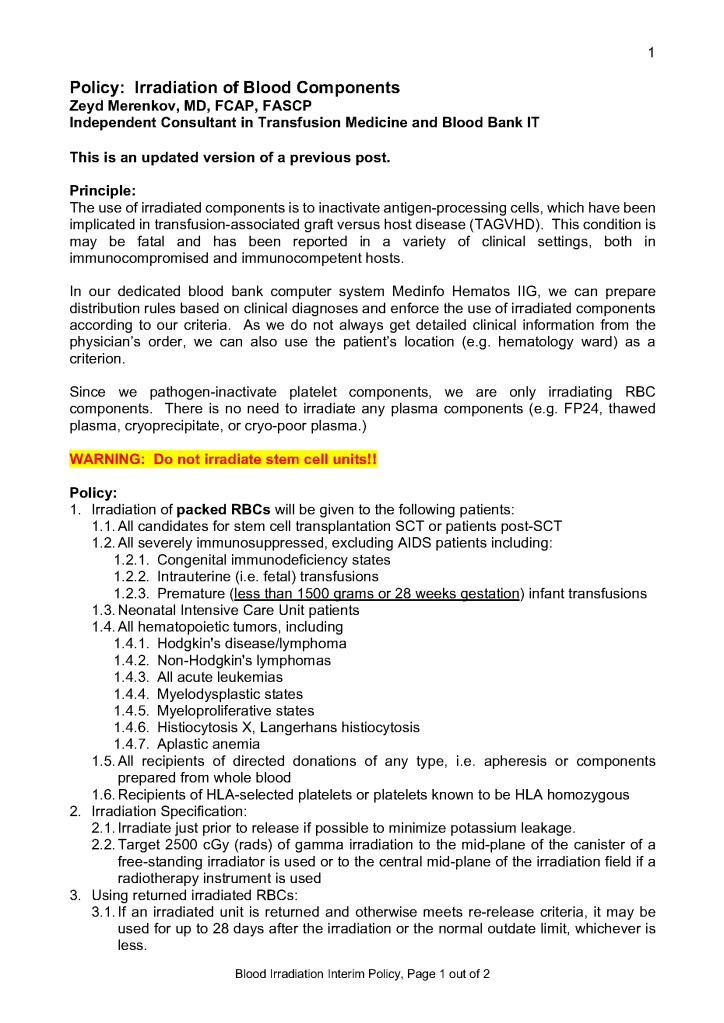 Transfusion Medicine, Blood Bank IT, Pathogen Inactivation, Plasma Fractionation, COVID-19 Convalescent Plasma Production