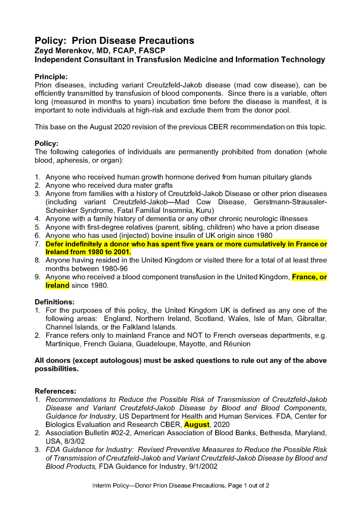 This is a revision to a previous post. All these criteria are built into the Hematos Medinfo IIG dedicated blood bank computer system.