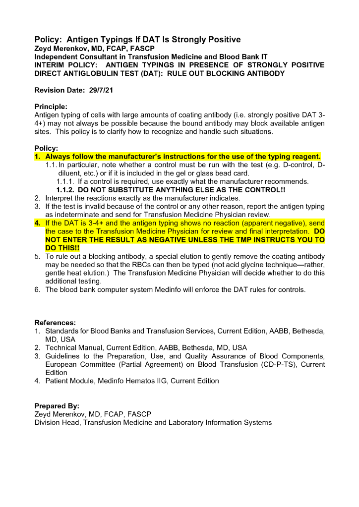 Blood Bank IT / Patient / Teaching Policy: Antigen Typings if DAT Is Strongly Positive Image12th Oct 202129th Jul 2021 drzeyd Share this: Click to share on LinkedIn (Opens in new window) LinkedIn Click to share on X (Opens in new window) X Click to share on Facebook (Opens in new window) Facebook Like Loading... Related