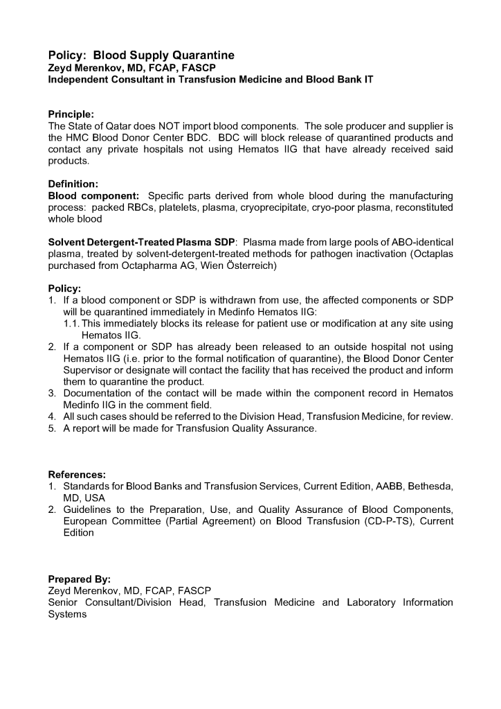 Administration / Blood Bank IT / Donor / Patient Policy: Blood Supply Quarantine Image18th Oct 20213rd Aug 2021 drzeyd Share this: Click to share on LinkedIn (Opens in new window) LinkedIn Click to share on X (Opens in new window) X Click to share on Facebook (Opens in new window) Facebook Like Loading... Related