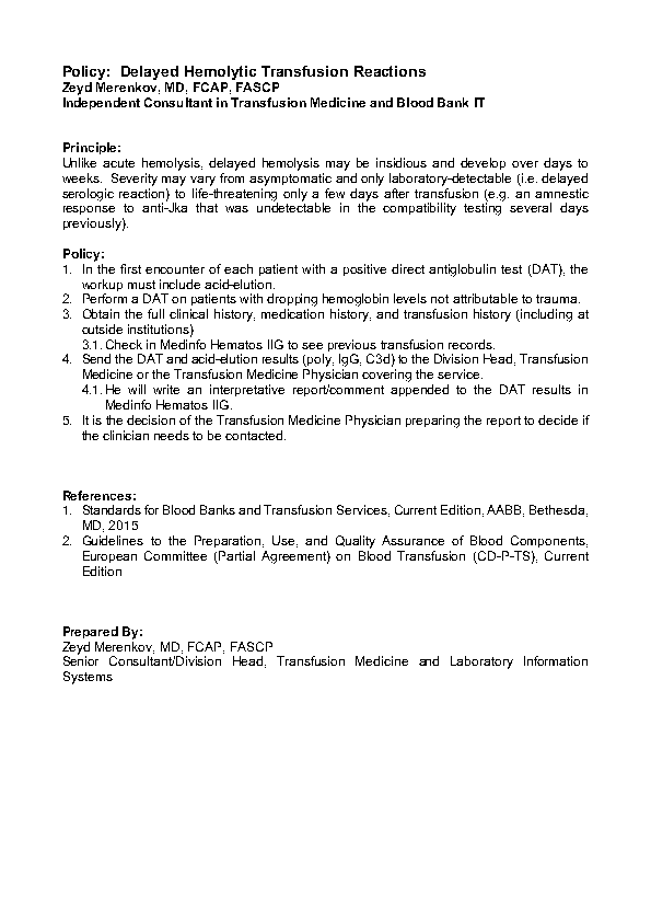Blood Bank IT / Patient / Teaching Policy: Delayed Hemolytic Transfusion Reactions Image25th Oct 20217th Aug 2021 drzeyd Share this: Click to share on LinkedIn (Opens in new window) LinkedIn Click to share on X (Opens in new window) X Click to share on Facebook (Opens in new window) Facebook Like Loading... Related