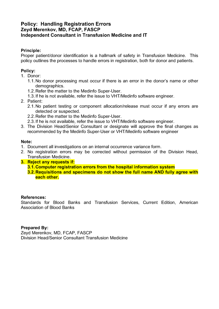 Blood Bank IT / Donor / Patient / Teaching Policy: Registration Errors Image23rd Nov 202124th Aug 2021 drzeyd Share this: Click to share on LinkedIn (Opens in new window) LinkedIn Click to share on X (Opens in new window) X Click to share on Facebook (Opens in new window) Facebook Like Loading... Related
