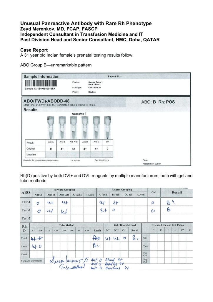 I want to thank Mr. Stephen Fuentes, SBB(ASCP) for his handling of this workup.