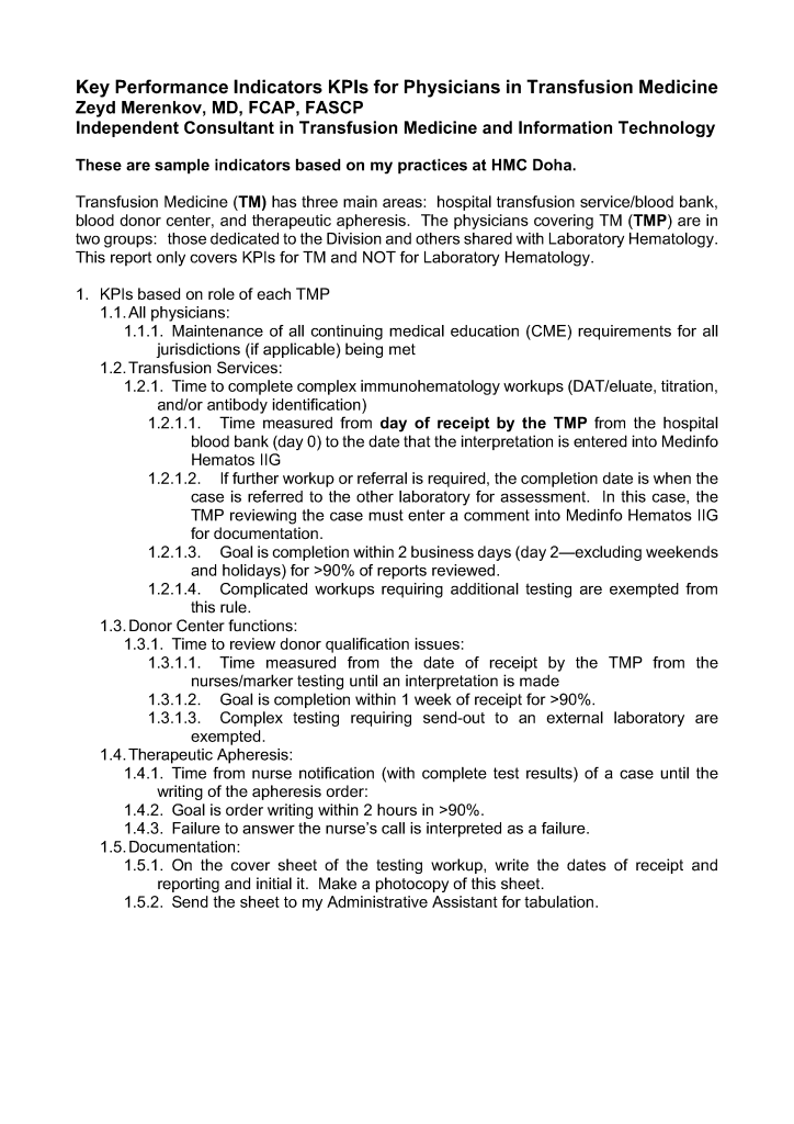 Administration Key Performance Indicators: Transfusion Medicine Physicians Image19th Feb 20224th Nov 2021 drzeyd Share this: Click to share on LinkedIn (Opens in new window) LinkedIn Click to share on X (Opens in new window) X Click to share on Facebook (Opens in new window) Facebook Like Loading... Related