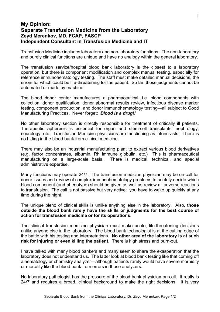 My Opinion: Separate the Blood Bank from the Laboratory 17th Mar 20223rd Dec 2021 drzeyd This is an updated version of a previous post.