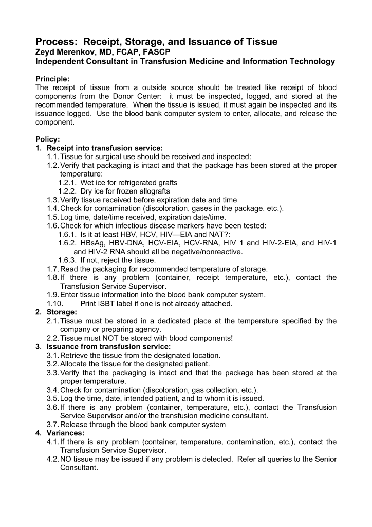 Process: Receipt, Storage, and Issuance of Tissue for Clinical Use Image24th Apr 202212th Jan 2022 drzeyd