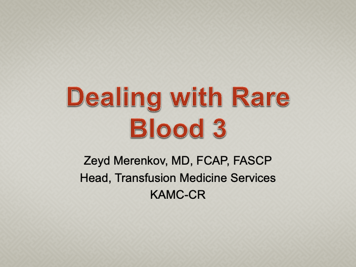 Dealing with Rare Blood Groups 1 7th Aug 202226th Apr 2022 drzeyd This is an updated version of a previous lecture.
