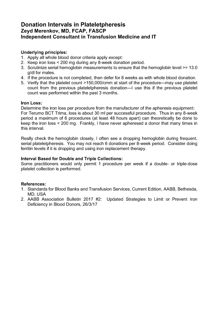 Apheresis / Donor / Teaching Donation Intervals for Plateletpheresis Image21st Oct 202223rd Jun 2022 drzeyd Share this: Click to share on LinkedIn (Opens in new window) LinkedIn Click to share on X (Opens in new window) X Click to share on Facebook (Opens in new window) Facebook Like Loading... Related