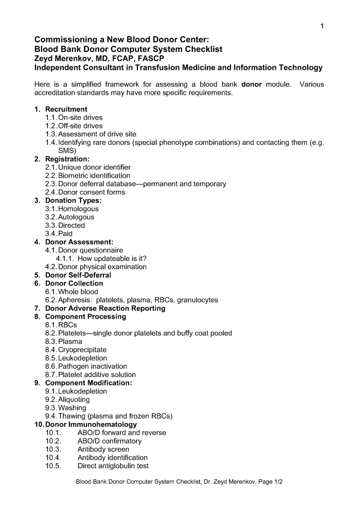 Commissioning a New Donor Center: Blood Bank Donor Computer System Checklist 20th Nov 202217th Jul 2022 drzeyd