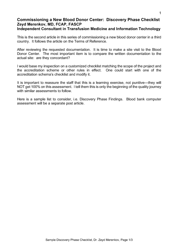Commissioning a New Blood Donor Center: Discovery Phase Checklist 17th Nov 202215th Jul 2022 drzeyd Blood Bank computer system assessment will be a separate document