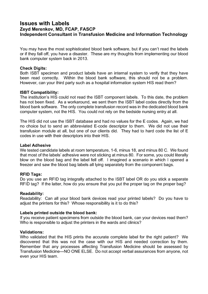 Blood Bank IT / Donor / Patient / Teaching Issues with Blood Bank Labels Image20th Dec 20221st Aug 2022 drzeyd Share this: Click to share on LinkedIn (Opens in new window) LinkedIn Click to share on X (Opens in new window) X Click to share on Facebook (Opens in new window) Facebook Like Loading... Related