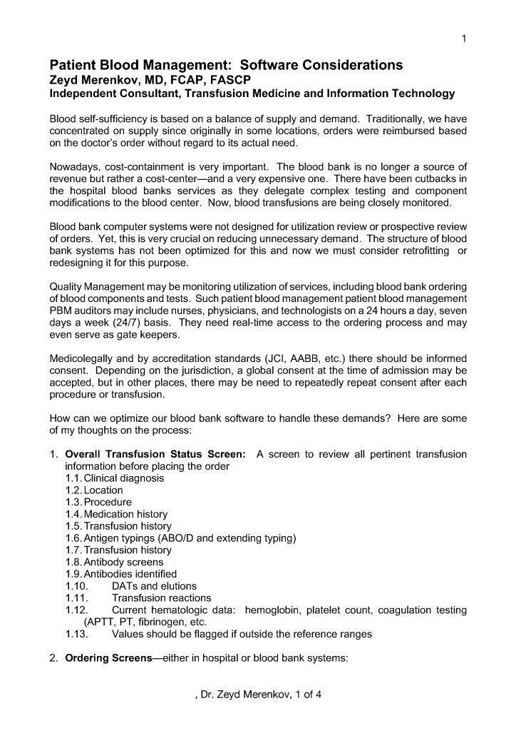 Transfusion Medicine, Blood Bank IT, Pathogen Inactivation, Plasma Fractionation, COVID-19 Convalescent Plasma Production