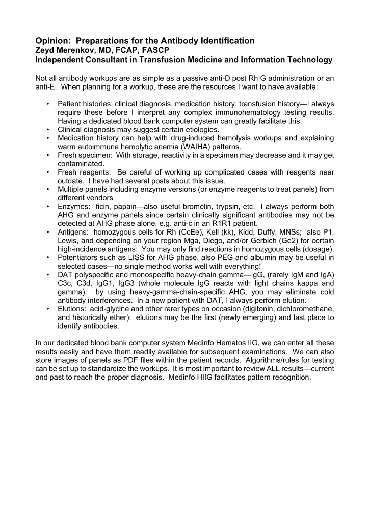 Blood Bank IT / Patient / Teaching Opinion: Preparations for the Antibody Identification Image15th Apr 202310th Oct 2022 drzeyd Share this: Click to share on LinkedIn (Opens in new window) LinkedIn Click to share on X (Opens in new window) X Click to share on Facebook (Opens in new window) Facebook Like Loading... Related