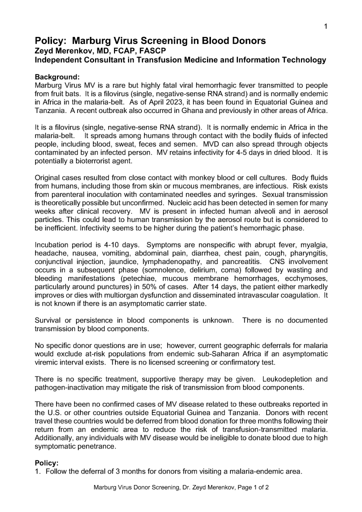 Transfusion Medicine, Blood Bank IT, Pathogen Inactivation, Plasma Fractionation, COVID-19 Convalescent Plasma Production