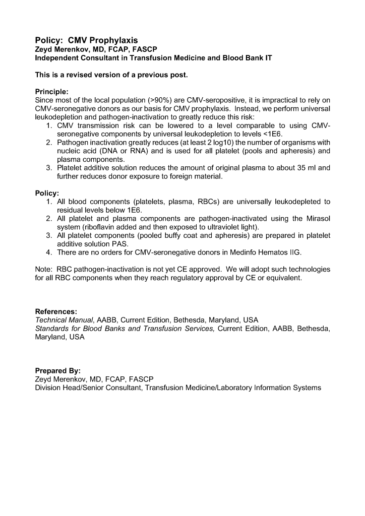 Blood Bank IT / Donor / Patient / Teaching CMV Prophylaxis Image11th Jun 202313th Dec 2022 drzeyd Share this: Click to share on LinkedIn (Opens in new window) LinkedIn Click to share on X (Opens in new window) X Click to share on Facebook (Opens in new window) Facebook Like Loading... Related
