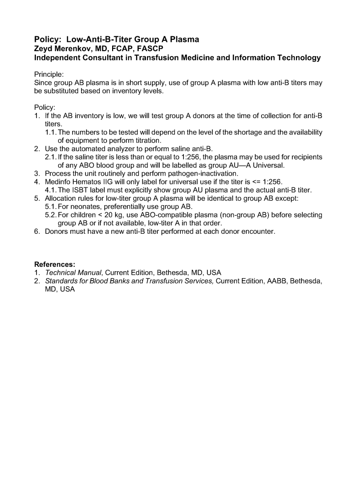 Donor / Patient / Teaching Universal, Low-Titer Group A Plasma Image26th Jun 20234th Jan 2023 drzeyd Share this: Click to share on LinkedIn (Opens in new window) LinkedIn Click to share on X (Opens in new window) X Click to share on Facebook (Opens in new window) Facebook Like Loading... Related
