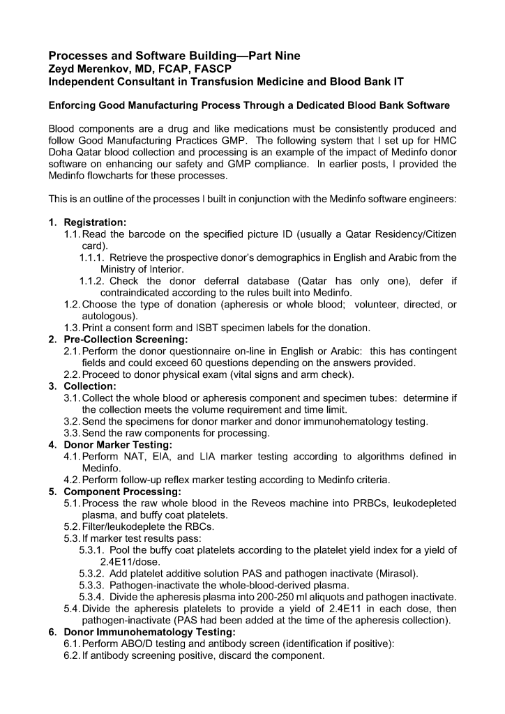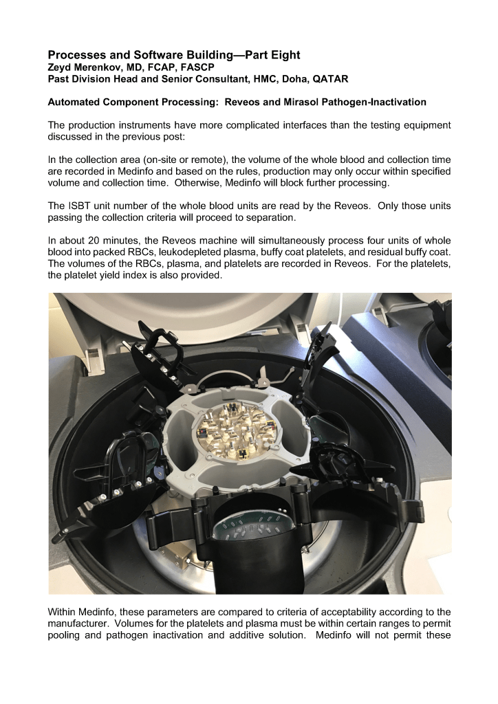 Transfusion Medicine, Blood Bank IT, Pathogen Inactivation, Plasma Fractionation, COVID-19 Convalescent Plasma Production