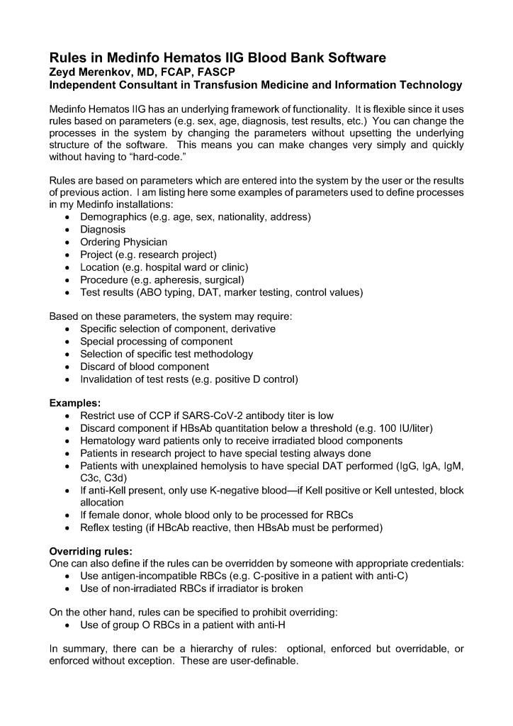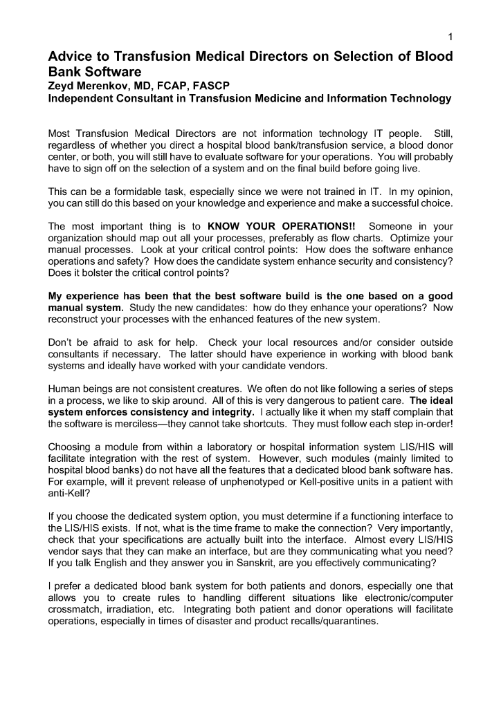Advice to Blood Bank Medical Directors on Selecting Blood Bank Software 21st Oct 20238th Apr 2023 drzeyd