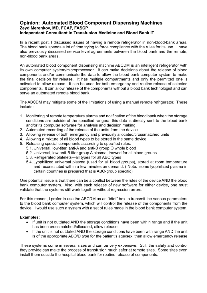 Blood Bank IT / Forms / Patient / Teaching Opinion: Automated Remote Blood Dispensing Machines Image22nd Nov 20236th May 2023 drzeyd Share this: Click to share on LinkedIn (Opens in new window) LinkedIn Click to share on X (Opens in new window) X Click to share on Facebook (Opens in new window) Facebook Like Loading... Related