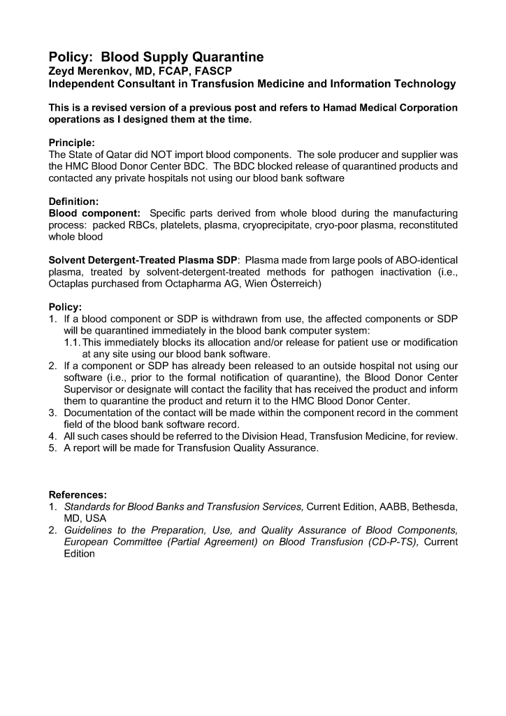 Apheresis / Blood Bank IT / Donor / Forms / Patient / Teaching Policy: Blood Supply Quarantine Image26th Feb 20243rd Aug 2023 drzeyd Share this: Click to share on LinkedIn (Opens in new window) LinkedIn Click to share on X (Opens in new window) X Click to share on Facebook (Opens in new window) Facebook Like Loading... Related