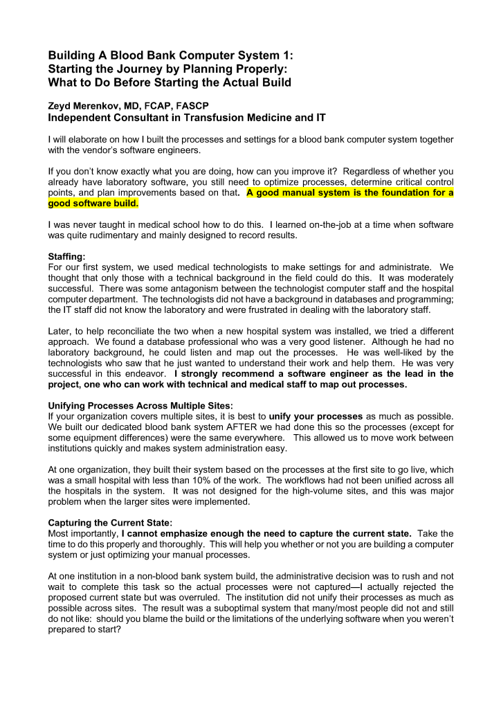 Administration / Blood Bank IT / Donor / Patient / Teaching Building a Blood Bank Computer System 1: Planning Properly and Pre-Build Considerations Image27th Feb 20243rd Aug 2023 drzeyd Share this: Click to share on LinkedIn (Opens in new window) LinkedIn Click to share on X (Opens in new window) X Click to share on Facebook (Opens in new window) Facebook Like Loading... Related
