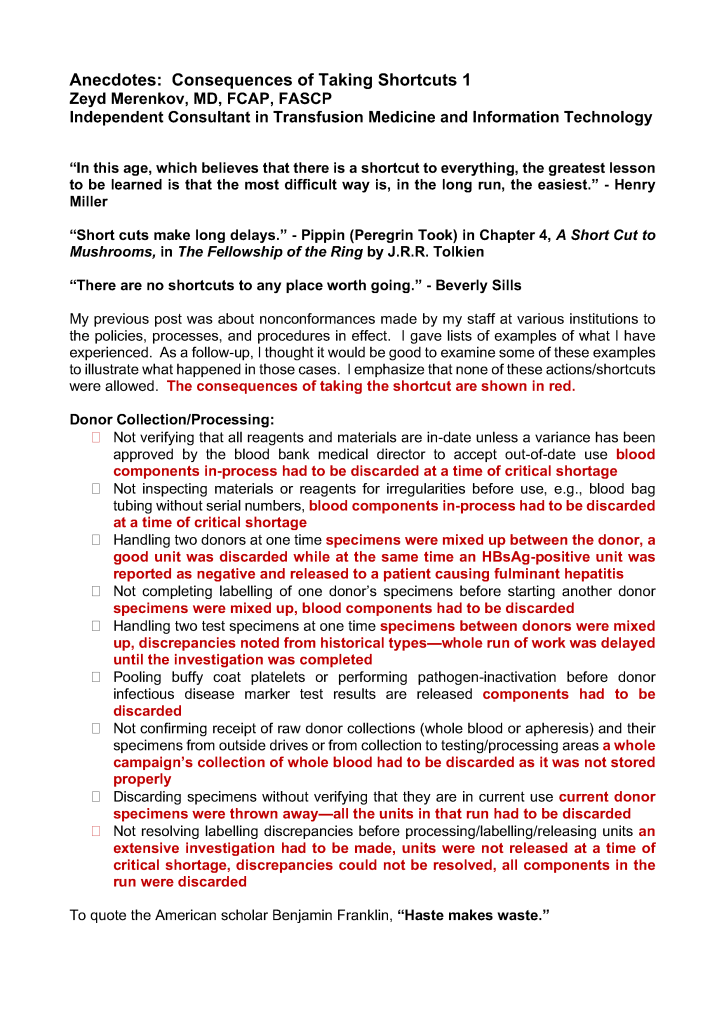 Blood Bank IT / Donor Consequences of Taking Shortcuts 1 Image15th May 202414th Oct 2023 drzeyd Share this: Click to share on LinkedIn (Opens in new window) LinkedIn Click to share on X (Opens in new window) X Click to share on Facebook (Opens in new window) Facebook Like Loading... Related