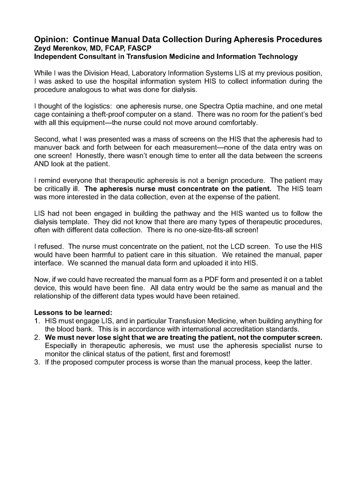Apheresis / Blood Bank IT / Donor / Forms / Patient / Teaching Opinion: Manual Data Collection During Apheresis Image31st May 202430th Oct 2023 drzeyd Share this: Click to share on LinkedIn (Opens in new window) LinkedIn Click to share on X (Opens in new window) X Click to share on Facebook (Opens in new window) Facebook Like Loading... Related