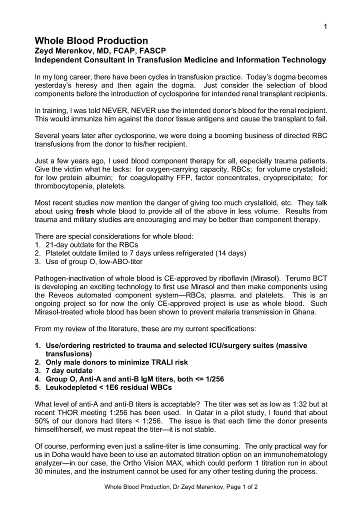 Transfusion Medicine, Blood Bank IT, Pathogen Inactivation, Plasma Fractionation, COVID-19 Convalescent Plasma Production