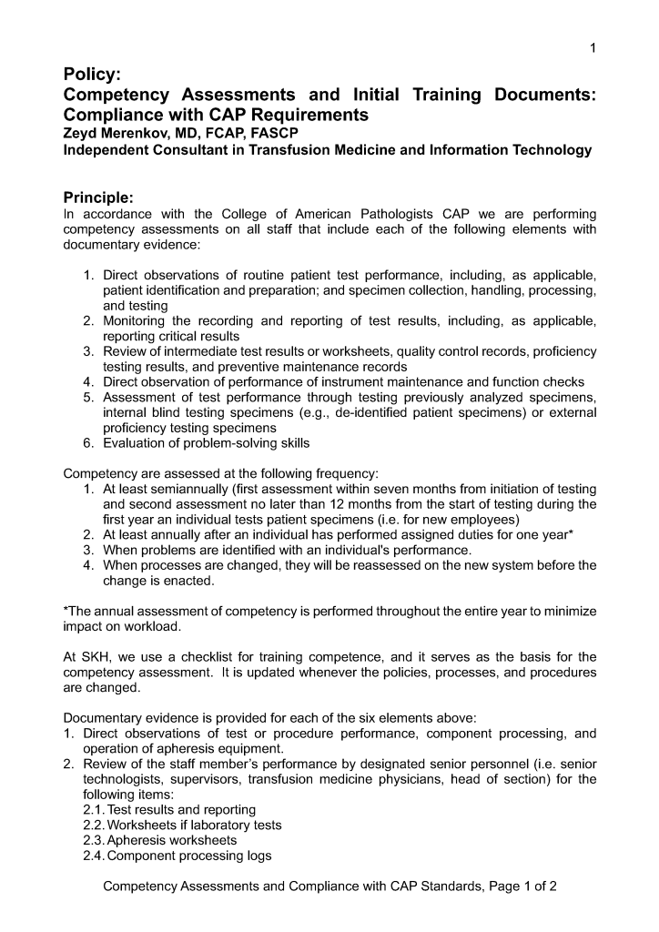 Policy: Competency Assessments