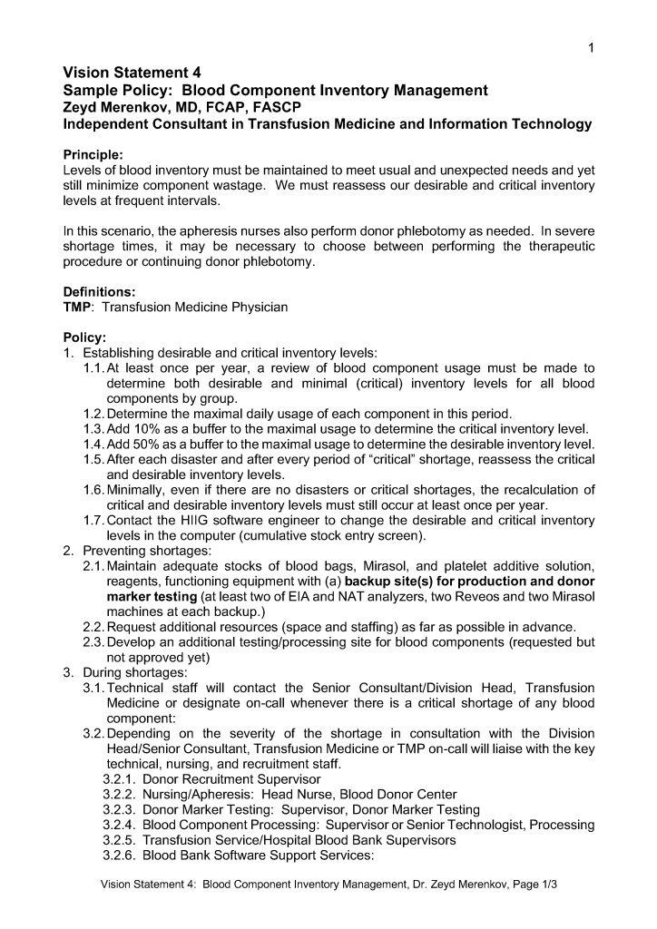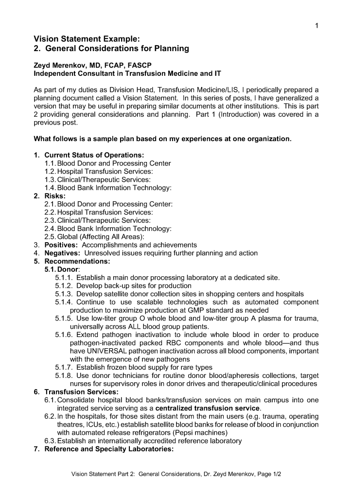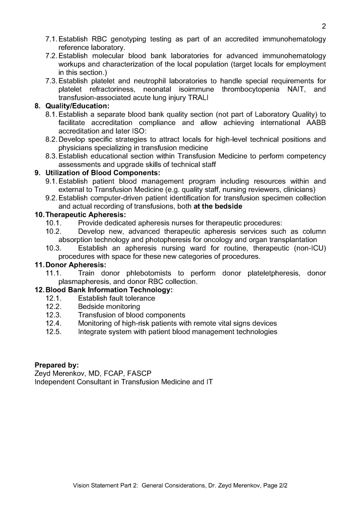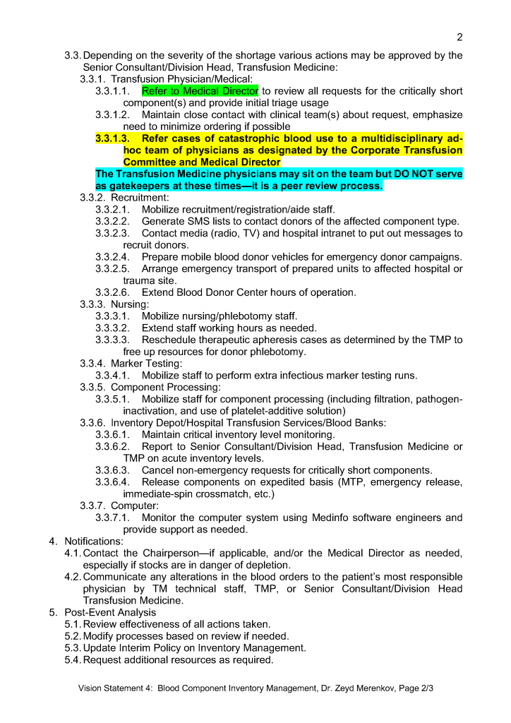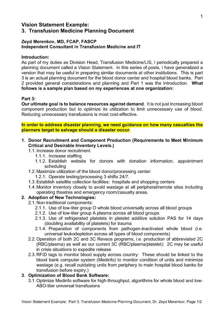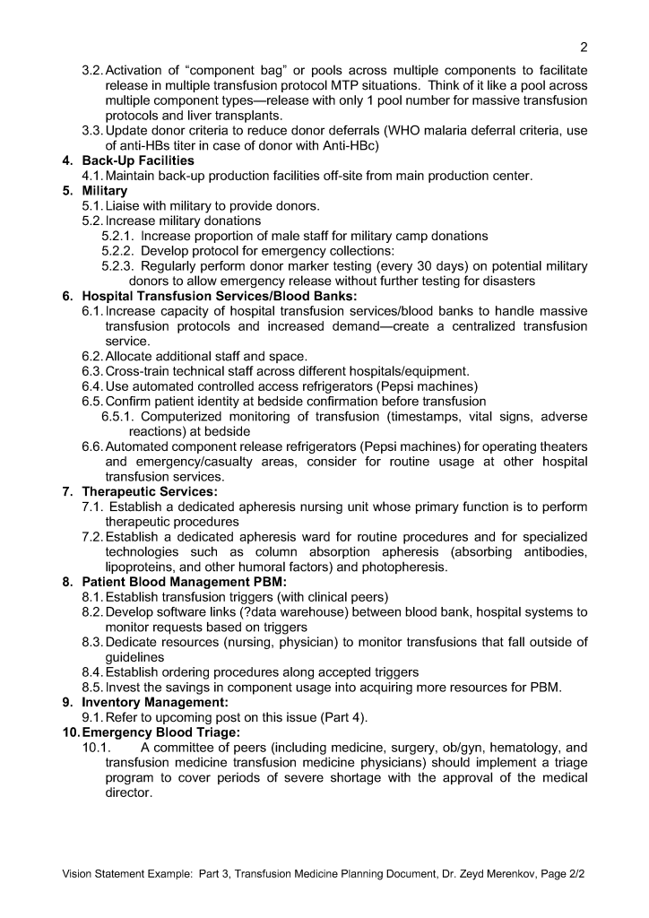 Vision Statement 3: Transfusion Medicine Planning