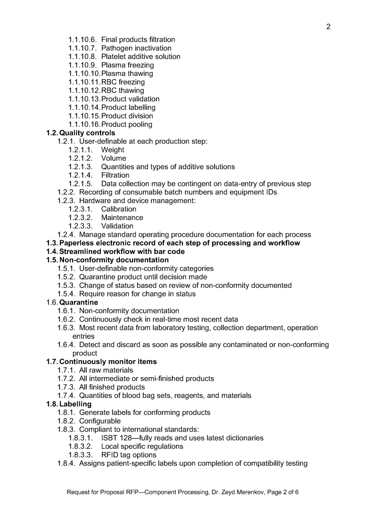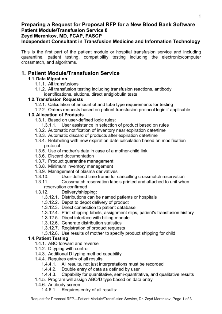 Request for Proposal 11: Quality Management Billing Tissue Banking