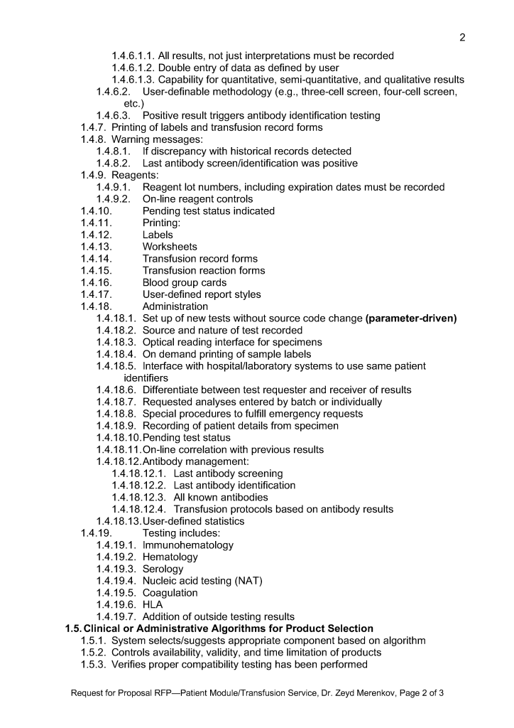 Request for Proposal 5: Donor Physical Exam