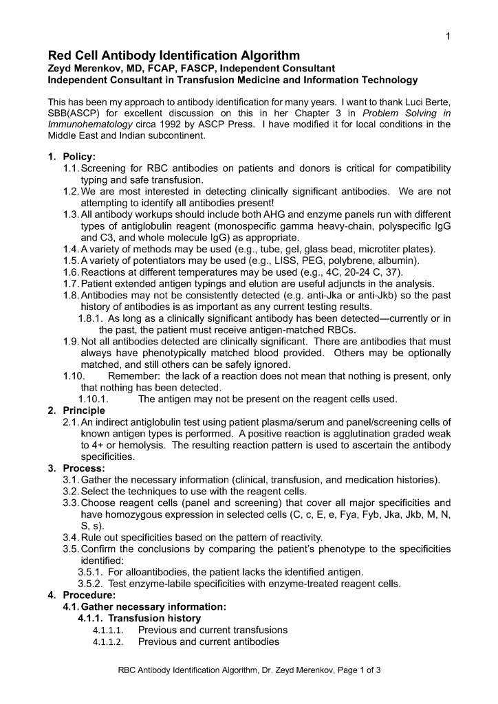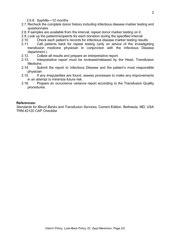 Information for the Transfusion Medicine Physician